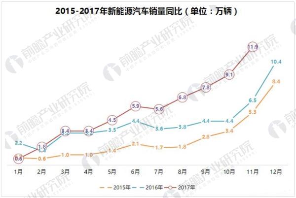從產(chǎn)銷規(guī)模來看,我國新能源汽車在全球市場(chǎng)的比重已超過50%;據(jù)前瞻產(chǎn)業(yè)研究院統(tǒng)計(jì)數(shù)據(jù)顯示,2017年1-11月,新能源汽車產(chǎn)銷分別完成63.9萬輛和60.9萬輛,同比分別增長49.7%和51.4%。保守估計(jì),今年中國新能源汽車的產(chǎn)銷會(huì)達(dá)到70萬輛左右,截止2017年保有量將會(huì)突破170萬輛左右。