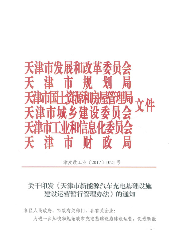 天津市印發(fā)新能源汽車充電基礎(chǔ)設(shè)施建設(shè)運營暫行管理辦法