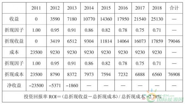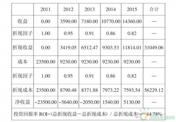 由表2 可以看出,在不考慮固定成本的情況下,該項目在 2014年已經(jīng)實現(xiàn)收益,即在此時該項目實現(xiàn)了經(jīng)營收入大于可變成本。從經(jīng)濟學(xué)的角度來說,在短期內(nèi)該項目有繼續(xù)進行下去的經(jīng)濟意義,符合經(jīng)濟學(xué)最基本的經(jīng)濟人假設(shè)。在2015 年,該項目的收益仍大于可變成本,且獲得的收益是 2014 年的 3 倍。但是計算其投資回報率可以發(fā)現(xiàn),在 2015年其投資回報率為負值,為 - 44.78%。