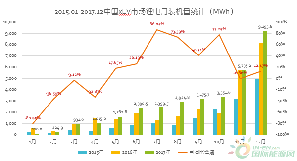 真鋰研究:2017年動力電池裝機(jī)33.55GWh,12月9.19GWh