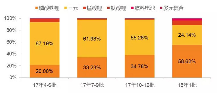 圖3 2017與2018《目錄》客車電池類型對(duì)比