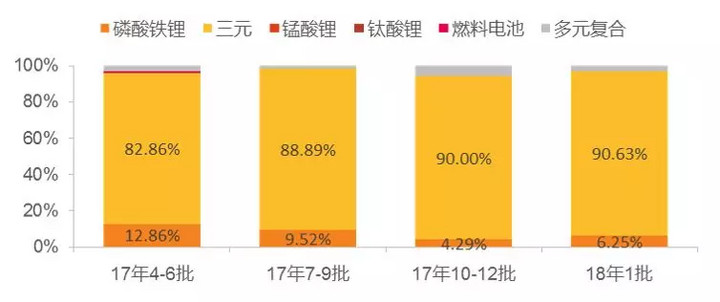 圖4 2017與2018《目錄》乘用車電池類型對(duì)比