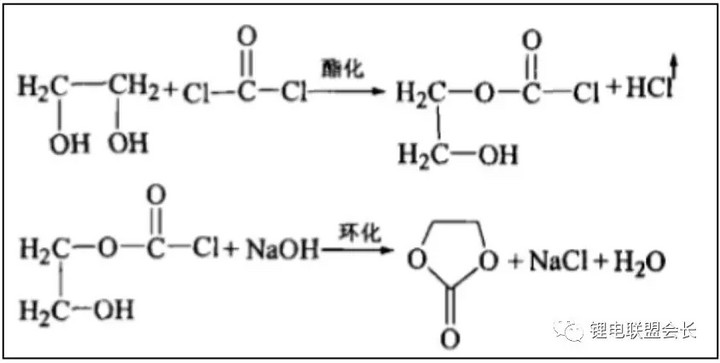 最早制備EC的方法是采用乙二醇以及光氣反應(yīng),但是此工藝流程廠,收率低以及成本告,污染嚴(yán)重,已經(jīng)被淘汰了。