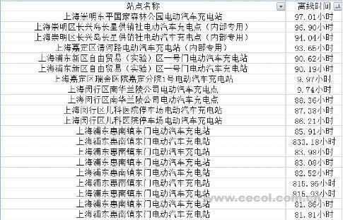 圖2 上海充電樁離線時間統(tǒng)計表部分