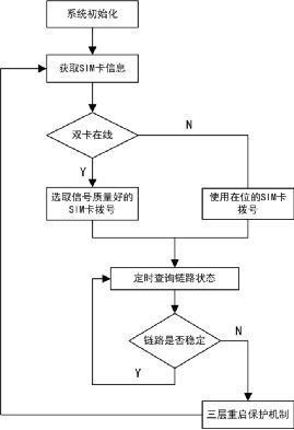 其中,判斷SIM卡在位狀態(tài)為兩層測試,兩次獲取失敗才會判定為不在位,如果在位,則挑選通信質(zhì)量較好的SIM卡進行撥號,然后進一步通過“PPP設(shè)備是否在位、IP地址是否正確、周期內(nèi)是否產(chǎn)生流量”判斷鏈路穩(wěn)定質(zhì)量,如果不穩(wěn)定則需重啟設(shè)備。