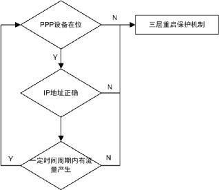 如果出現(xiàn)鏈路不穩(wěn)定,比如正常工作時沒有檢測到產(chǎn)生流量、IP地址不正確甚至沒有分配到IP地址,就需要重啟,而重啟由“軟復(fù)位——硬復(fù)位——TCU系統(tǒng)復(fù)位”三層進行層層遞進的復(fù)位,加強離線重啟;