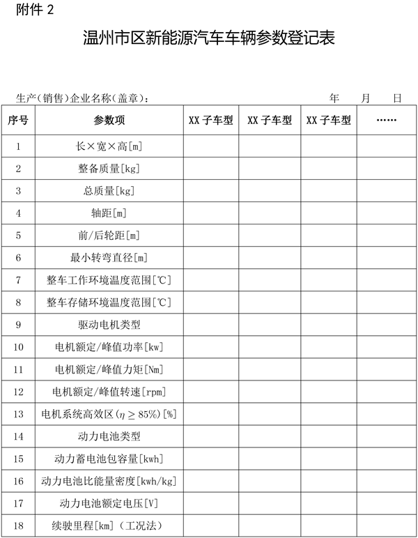 2.溫州市區(qū)新能源汽車車輛參數(shù)登記表(附件2);