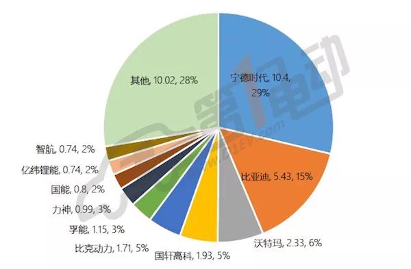 我們之前測(cè)經(jīng)測(cè)算過(guò)2017年國(guó)內(nèi)幾大動(dòng)力電池企業(yè)的產(chǎn)品裝機(jī)量,也就是實(shí)實(shí)在在裝在車(chē)上的電池量。從總量上看,比亞迪和寧德時(shí)代這兩家企業(yè)瓜分了全國(guó)約44%的市場(chǎng)份額。