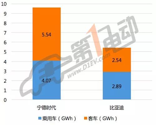 2017年寧德時(shí)代和比亞迪動(dòng)力電池供應(yīng)量對(duì)比(未包含專(zhuān)用車(chē))