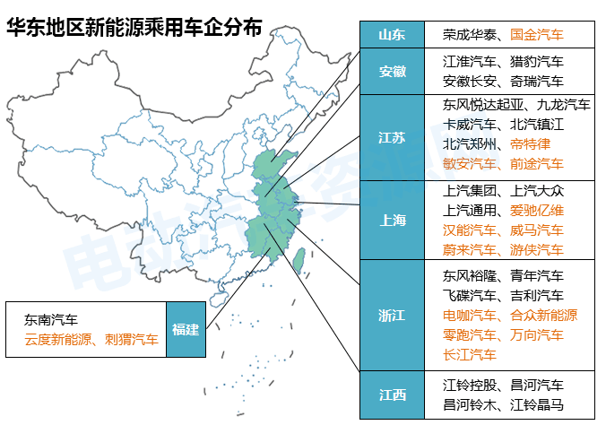 總結(jié):從整體的區(qū)域分布來看,新能源乘用車企業(yè)主要集中在華東、華北以及華南地區(qū),具體到省級(jí)區(qū)域來看,同樣分化較大。而從造車勢力分布來看,華東地區(qū)新造車勢力極多,而華南和華北地區(qū)則是傳統(tǒng)造車勢力的根據(jù)地。