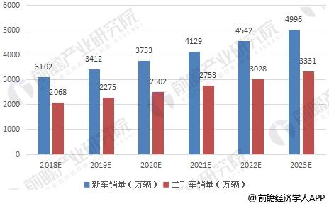 中國現(xiàn)在已是全球最大的新車市場,未來也會(huì)成為最大的二手車市場,市場潛力很大。據(jù)前瞻產(chǎn)業(yè)研究院發(fā)布的《二手汽車行業(yè)市場需求預(yù)測與投資戰(zhàn)略規(guī)劃分析報(bào)告》數(shù)據(jù)顯示,截止2017年7月,我國汽車保有量約為2.05億輛,樂觀估計(jì)每年新增新車增速在10%以上,按照發(fā)達(dá)國家二手車與新車流通量比例一般在1.5:1以上,按照這個(gè)比例計(jì)算,預(yù)計(jì)2023年,我國二手車交易量有望超過3300萬輛。