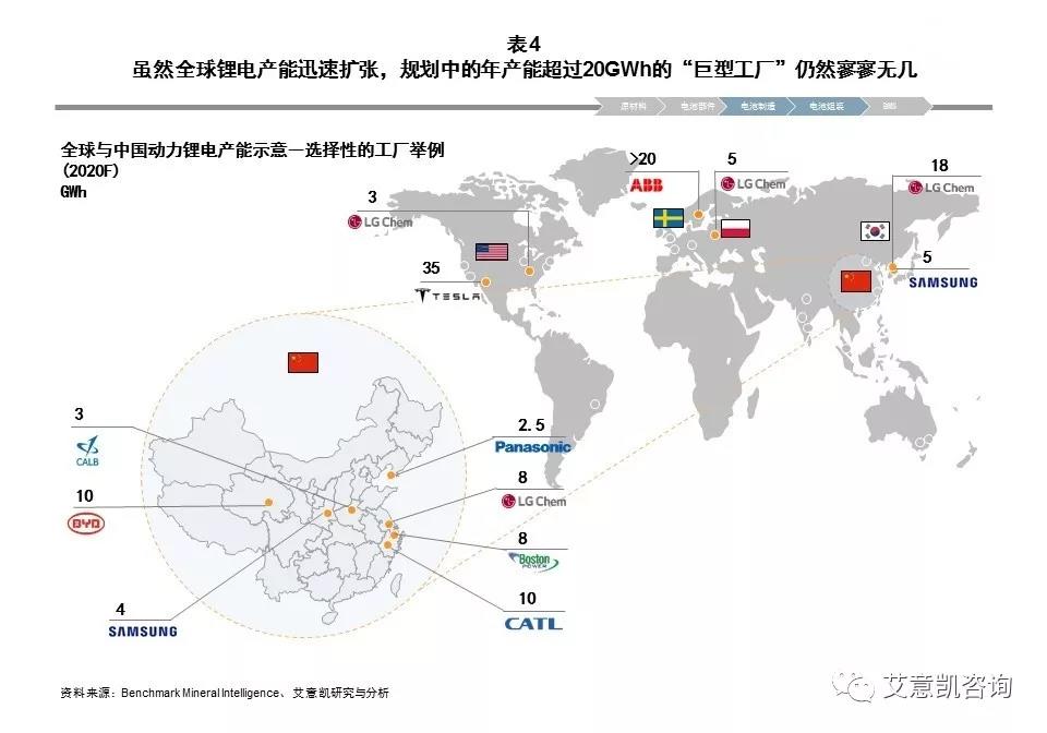 隨著補貼政策的調(diào)整與下游車廠的壓力的雙重夾擊,動力電池企業(yè)毛利率將受到擠壓。想要生存,必須擴(kuò)大產(chǎn)能,維持產(chǎn)能與成本的領(lǐng)先優(yōu)勢。我們把年產(chǎn)能超過20GWh的動力電池廠稱作是“巨型工廠”。擁有“巨型工廠”,將是未來動力鋰電競爭優(yōu)勢的最佳體現(xiàn)。