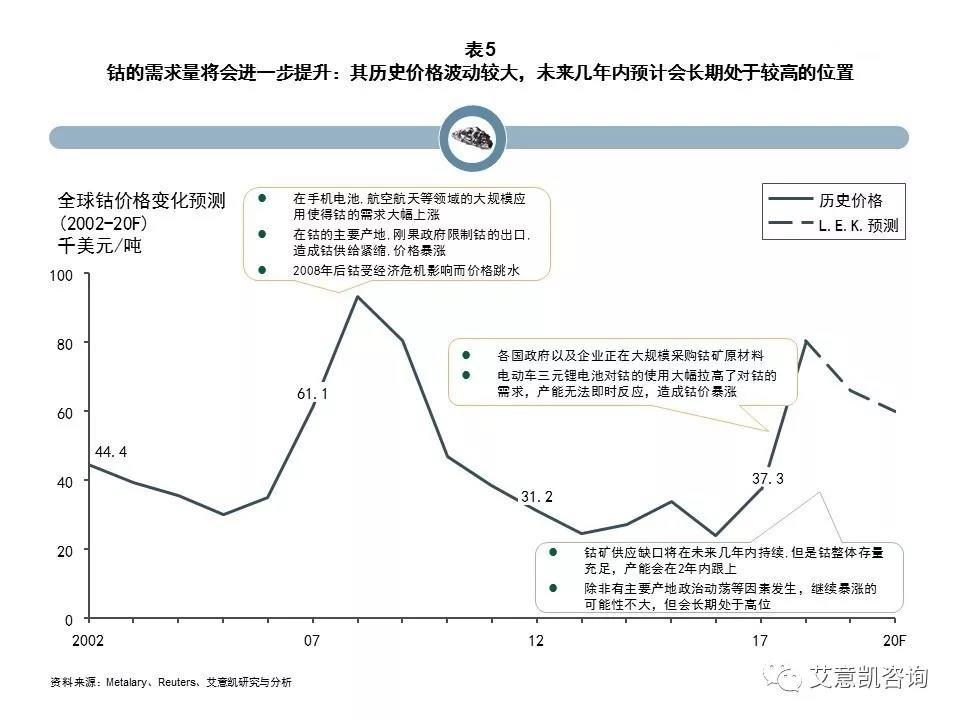 為此,我們預(yù)計在2019年之后,除非有特殊因素的影響(例如,主要產(chǎn)地剛果的局勢不穩(wěn)定性),鈷的價格會穩(wěn)定并且回落,只是無法回落到2017年之前的低點。長期來看,對汽車動力電池企業(yè)仍然應(yīng)該加強對上游資源的把控,適當(dāng)進(jìn)行投資。