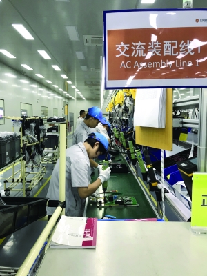 左圖為各種新能源汽車充電設(shè)備。右為生產(chǎn)車間 劉國(guó)慶攝新能源汽車的快速推廣和應(yīng)用,一直以來最大的瓶頸之一就是充電難。4年前,因?yàn)樵诳?