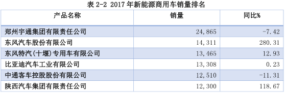 商用車集中度提髙。2017年新能源商用車銷量近20萬輛,其 中銷量過萬的企業(yè)為6家,6家占市場份額接近50%。