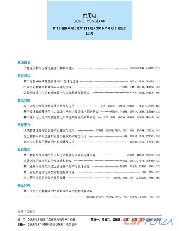 2019年6月5日,由國網(wǎng)信通產(chǎn)業(yè)集團和英大傳媒集團共同策劃的泛在電力物聯(lián)網(wǎng)??匠霭姘l(fā)行。這是我國首冊全面介紹泛在電力物聯(lián)網(wǎng)的專業(yè)型學(xué)術(shù)期刊,??l(fā)表于中國科技核心期刊《供用電》2019年第6期。