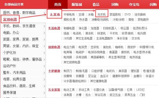 ①邏輯分類:將對象按照一定的現(xiàn)實邏輯進行分類組織。例如,在生活中,要買一個洗衣機,在百貨商城中依次找到家電賣場→大家電類→洗衣機品類→(品牌、容量、是否智能、缸數(shù)等)。相應(yīng)地,一個電子商務(wù)網(wǎng)站的信息組織形式類似設(shè)計。