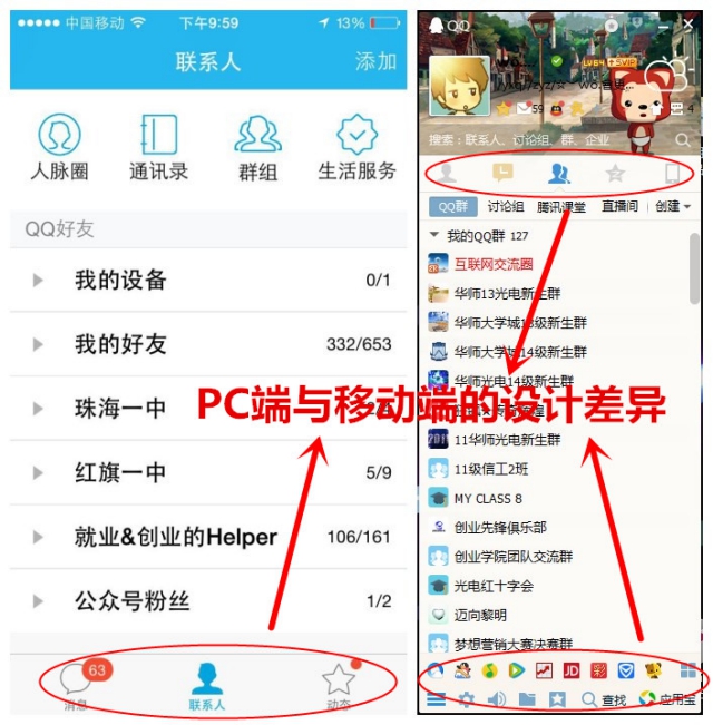 想起前不久深圳PM大會上鵝廠前輩分享QQ的年輕化之路,有談到新版手Q底部導(dǎo)航濃縮成3個tab的改進。在4tab當(dāng)?shù)?tab拉風(fēng)的時代,敢推出3tab的設(shè)計,并且獲得用戶的認可,這少不了優(yōu)秀導(dǎo)航設(shè)計的功勞。