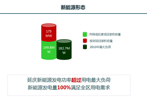 孔啟翔首先介紹了北京延慶的新能源資源狀況,北京市延慶區(qū)境內(nèi)擁有豐富的風(fēng)能、太陽能、生物質(zhì)能等綠色可再生資源,是首批國家綠色能源示范縣,新能源發(fā)電潛力巨大,具有巨大的產(chǎn)業(yè)優(yōu)勢。延慶新能源發(fā)電功率超過用電最大負(fù)荷,新能源發(fā)電量100%滿足全區(qū)用電需求。