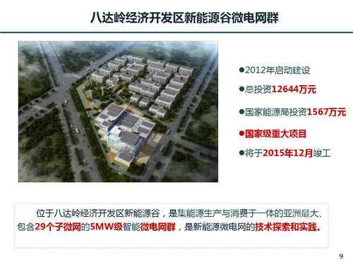 為解決新能源有效接納與利用,2011年八達(dá)嶺經(jīng)濟(jì)開發(fā)區(qū)面向國際開展了新能源微電網(wǎng)的方案征集。2012年啟動建設(shè)八達(dá)嶺經(jīng)濟(jì)開發(fā)區(qū)新能源谷微電網(wǎng)群,總投資12644萬元,國家能源局投資1567萬元,是國家級重大項(xiàng)目。這個位于八達(dá)嶺經(jīng)濟(jì)開發(fā)區(qū)新能源谷的項(xiàng)目,是集能源生產(chǎn)與消費(fèi)于一體的亞洲最大、包含29個子微網(wǎng)的5MW級智能微電網(wǎng)群,是新能源微電網(wǎng)的技術(shù)探索和實(shí)踐。孔啟翔在論壇上還詳細(xì)介紹了北京延慶智能電網(wǎng)創(chuàng)新示范區(qū)、北京延慶新能源微電網(wǎng)示范區(qū)以及北京延慶能源互聯(lián)網(wǎng)綜合示范區(qū)的情況。