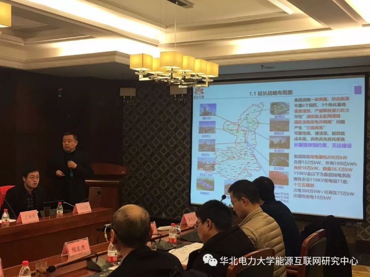 圖為華北電力大學(xué)能源互聯(lián)網(wǎng)研究中心副主任劉敦楠副教授代表報(bào)告編制單位進(jìn)行兩個項(xiàng)目的可行性研究匯報(bào)