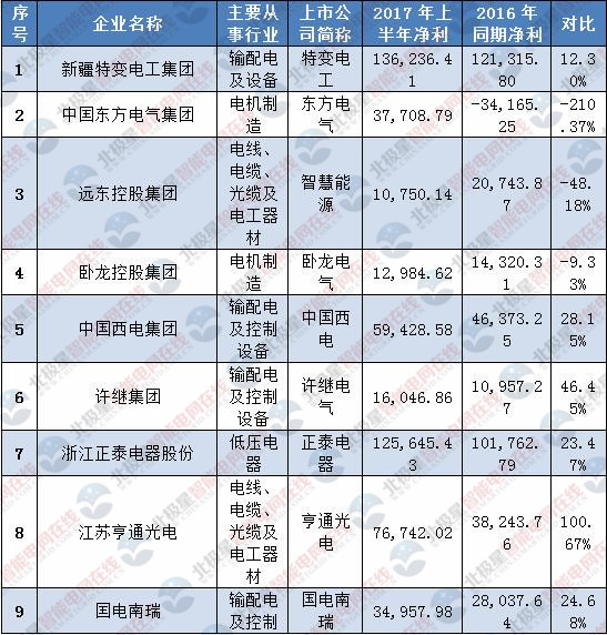86家智能電網(wǎng)A股公司2017年上半年凈利潤情況匯總