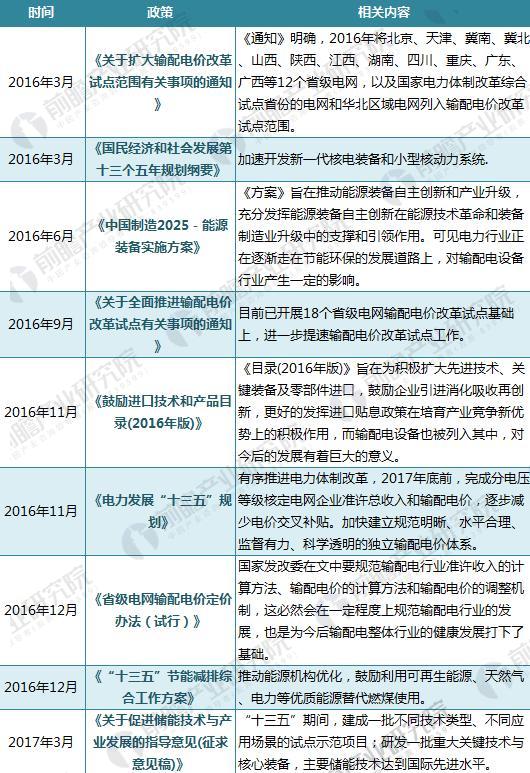 圖表3:2016年以來國家關于輸配電設備的政策匯總