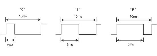 IRIG-B碼的幀周期是1s,包含100個碼元,每個碼元周期為10ms,即IRIG-B碼的碼元速率為100pps。IRIG-B碼有3種碼元,二進(jìn)制“0”、“1”和位置識別標(biāo)志Px,脈寬分別為2ms、5ms和8ms。脈沖信號如圖1.3所示。