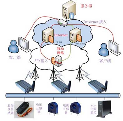 透過(guò)遠(yuǎn)程無(wú)線監(jiān)控系統(tǒng),可將機(jī)房?jī)?nèi)采集到的溫度、濕度、電壓、電流信號(hào), UPS系統(tǒng)工作運(yùn)行狀態(tài)、UPS電池電壓、UPS溫度等傳回監(jiān)控中心進(jìn)行24小時(shí)全天候的實(shí)時(shí)監(jiān)控,為進(jìn)一步預(yù)防和處理故障提供有力的根據(jù);當(dāng)發(fā)現(xiàn)溫度、濕度、電壓、電流異常提前預(yù)警等。