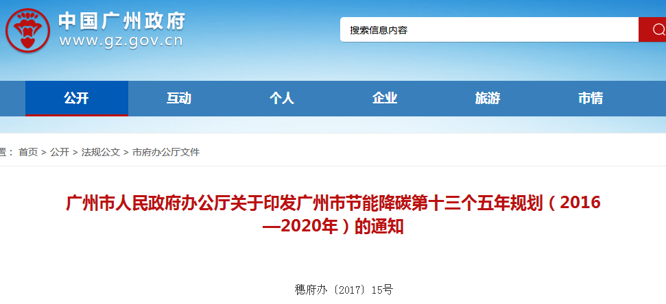 廣州市人民政府辦公廳關(guān)于印發(fā)廣州市節(jié)能降碳第十三個五年規(guī)劃(2016—2020年)的通知