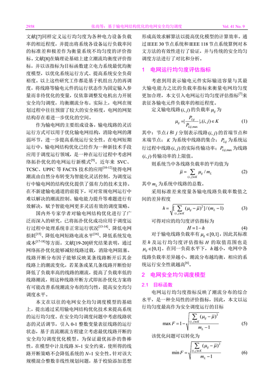 提高電網(wǎng)運(yùn)行均勻度有助于提高系統(tǒng)的運(yùn)行安全性。輸電網(wǎng)結(jié)構(gòu)優(yōu)化作為一種調(diào)度運(yùn)行領(lǐng)域的新技術(shù)手段,通過在電網(wǎng)運(yùn)行過程中動(dòng)態(tài)選擇最優(yōu)網(wǎng)絡(luò)拓?fù)浣Y(jié)構(gòu),可以改善電網(wǎng)各元件潮流分布的均勻度。在傳統(tǒng)安全均勻調(diào)度
