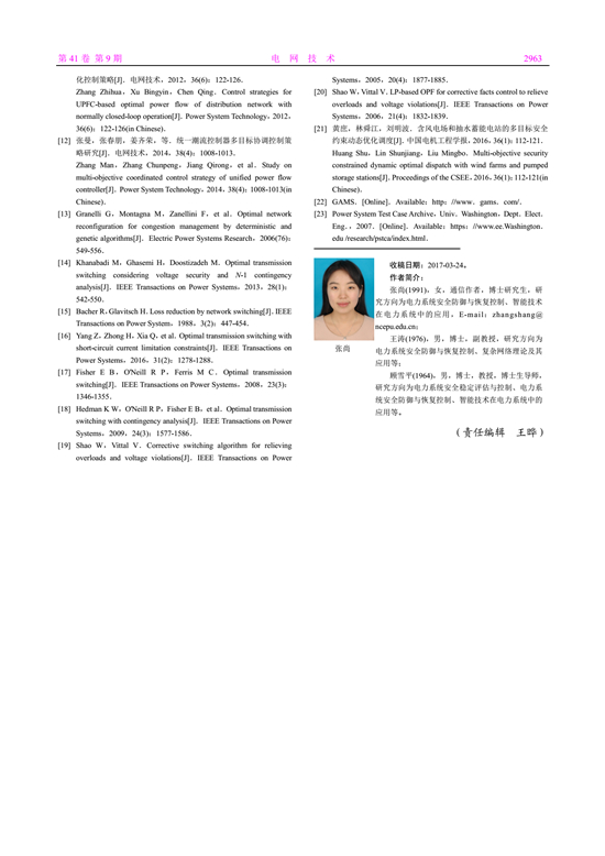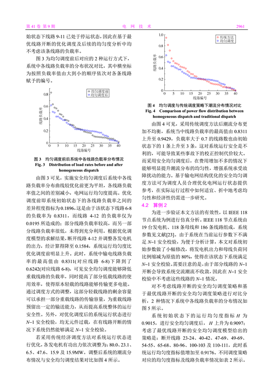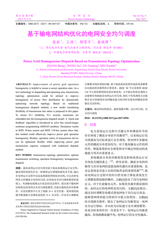 提高電網(wǎng)運(yùn)行均勻度有助于提高系統(tǒng)的運(yùn)行安全性。輸電網(wǎng)結(jié)構(gòu)優(yōu)化作為一種調(diào)度運(yùn)行領(lǐng)域的新技術(shù)手段,通過在電網(wǎng)運(yùn)行過程中動(dòng)態(tài)選擇最優(yōu)網(wǎng)絡(luò)拓?fù)浣Y(jié)構(gòu),可以改善電網(wǎng)各元件潮流分布的均勻度。在傳統(tǒng)安全均勻調(diào)度模型的基礎(chǔ)上,考慮輸電線路運(yùn)行狀態(tài)的靈活調(diào)節(jié),提出基于輸電網(wǎng)結(jié)構(gòu)優(yōu)化的電網(wǎng)安全均勻調(diào)度模型。為保證最優(yōu)拓?fù)涞聂敯粜?,在?yōu)化模型中計(jì)及了線路N-1安全約束,使所得的線路開斷策略不會(huì)降低系統(tǒng)的N-1安全性。針對(duì)該大規(guī)模混合整數(shù)非線性規(guī)劃問題,基于校驗(yàn)添加思想形成高效求解算法以提高優(yōu)化模型的計(jì)算效率。IEEE30節(jié)點(diǎn)系統(tǒng)和IEEE118節(jié)點(diǎn)系統(tǒng)算例的仿真結(jié)果表明,文中提出的優(yōu)化調(diào)度方法能夠有效地提高電網(wǎng)運(yùn)行均勻度,相比于傳統(tǒng)調(diào)度方法能夠在充分挖掘現(xiàn)有電網(wǎng)輸電能力的同時(shí)實(shí)現(xiàn)電網(wǎng)潮流的智能化靈活控制。