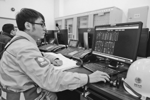 運維人員在500千伏五角場智能變電站主控室查看遙測信號。朱鷹杰攝