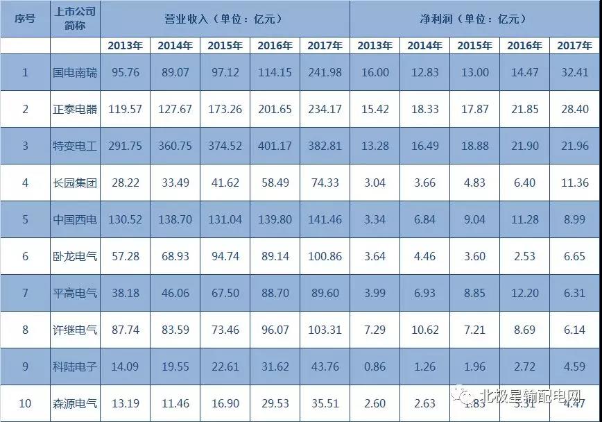 2017智能電網(wǎng)凈利前十企業(yè)歷年業(yè)績情況