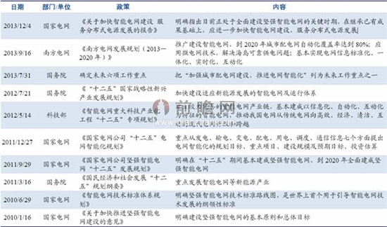目前,《國民經(jīng)濟(jì)與社會發(fā)展“十二五”規(guī)劃綱要》和《“十二五”國家戰(zhàn)略性新興產(chǎn)業(yè)發(fā)展規(guī)劃》對發(fā)展智能電網(wǎng)做出了部署,將智能電網(wǎng)建設(shè)上升至過國家戰(zhàn)略層面的高度。與此同時,電網(wǎng)公司分別出臺政策,指出已經(jīng)過加快智能電網(wǎng)建設(shè)和服務(wù)分不是的快速發(fā)展,智能電網(wǎng)建設(shè)將加快推進(jìn)。