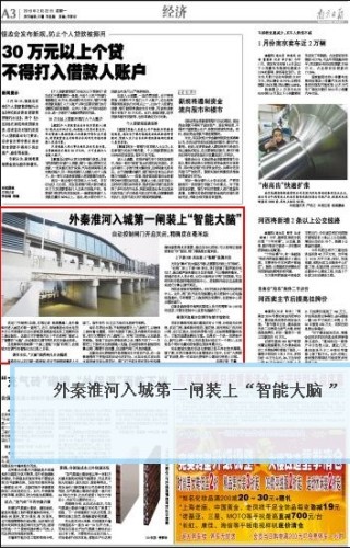 2月22日,《南京日報》A3版以《外秦淮河入城第一閘裝上智能大腦》為題,報道南瑞水利水電公司承建的武定門節(jié)制閘自動化控制及視頻監(jiān)視系統(tǒng)工程。 詳見:http: njrb njnews cn html 2010-02 22 content