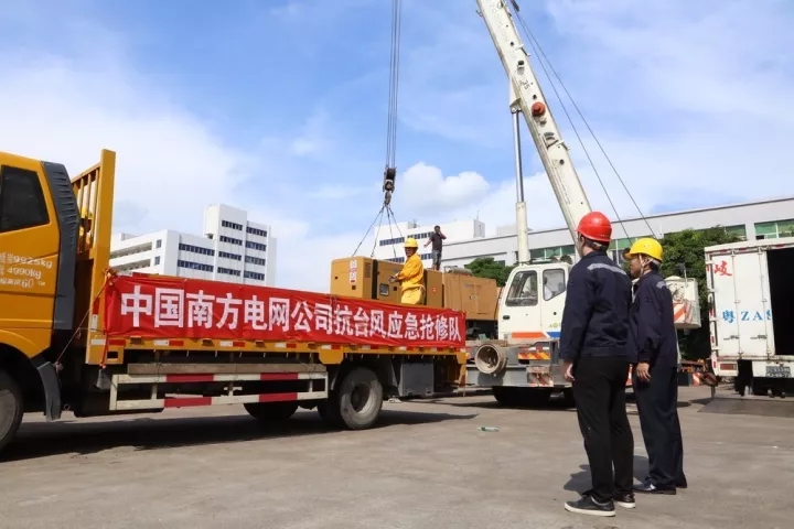 ▲8月28日,南方電網(wǎng)技術(shù)人員在風(fēng)雨中與澳門(mén)交通事務(wù)局工作人員進(jìn)行對(duì)接,讓他們盡快熟悉發(fā)電機(jī)的使用方法。林丹丹 攝