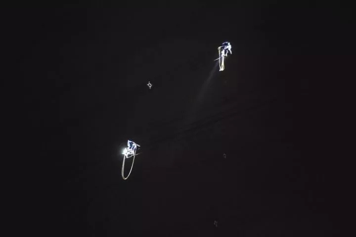 ▲強(qiáng)臺(tái)風(fēng)過(guò)后的珠海,一處不知名的荒郊野外,幾名南網(wǎng)員工正在220千伏國(guó)珠線(xiàn)上進(jìn)行高空搶險(xiǎn),經(jīng)過(guò)幾個(gè)小時(shí)的連續(xù)奮戰(zhàn),直至8月24日凌晨5時(shí)30分完成修復(fù)作業(yè)。賴(lài)增鵬 許昌永 周卓英 攝