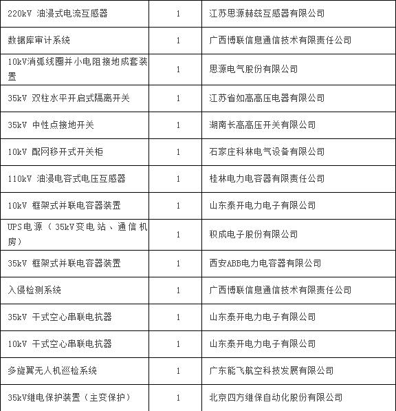 廣西電網(wǎng)2017年省級物資集中采購第五批專項招標中標結(jié)果