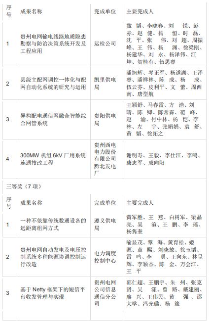 近日,貴州省電機(jī)工程學(xué)會公布《關(guān)于公布2017年度貴州省電力科技獎的通知》,通知中稱,根據(jù)專業(yè)組初評意見,2017年11月21日,科技獎勵辦法評審專家委員會對專業(yè)組推薦成果進(jìn)行審查和表決,同意對“基于實時波形壓縮的過電壓監(jiān)測及工程應(yīng)用”“貴州電網(wǎng)輸電線路災(zāi)害預(yù)警與防災(zāi)輔助決策平臺研究”等18項科技進(jìn)步成果、“貴州電網(wǎng)220kV主變保護(hù)裝置升級改造及定值策略優(yōu)化研究及應(yīng)用”“貴州電網(wǎng)輸電線路地質(zhì)隱患勘察與防治決策系統(tǒng)開發(fā)及工程應(yīng)用”等14項技改貢獻(xiàn)成果、“基于防護(hù)光纜布線裝置研究與應(yīng)用”“35千伏電壓互感器熔斷器安裝座的研制”等11項職工技術(shù)創(chuàng)新成果進(jìn)行公布并予以表彰。