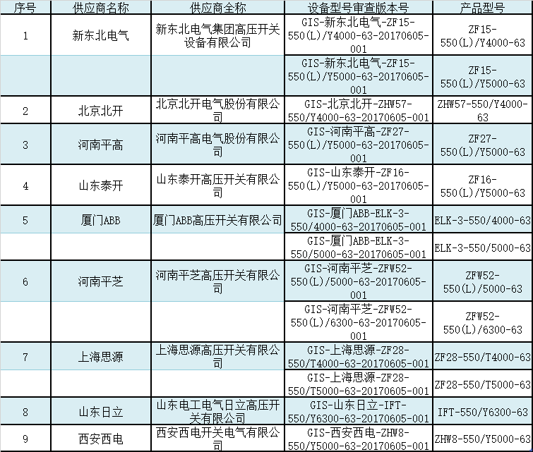 通過500kV HGIS設(shè)備型號(hào)審查的廠家有9家,通過110KV GIS設(shè)備型號(hào)審查的廠家有11家,通過220kV GIS設(shè)備型號(hào)審查復(fù)審的廠家有9家。北極星輸配電網(wǎng)整理如下: