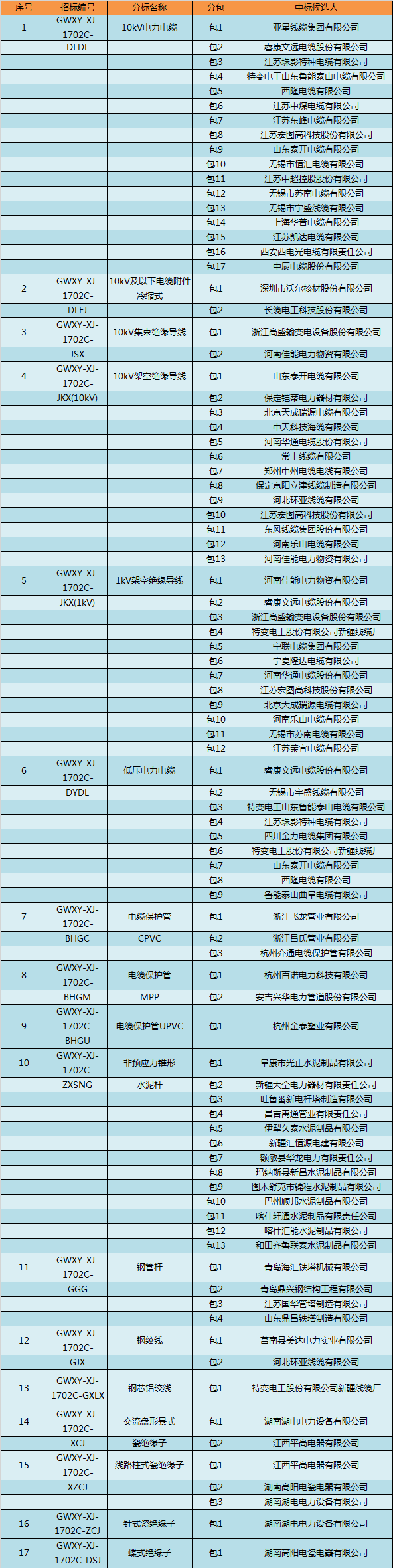 國(guó)網(wǎng)新疆2017年第二次配網(wǎng)設(shè)備/線材協(xié)議庫(kù)存貨物招標(biāo)中標(biāo)候選人