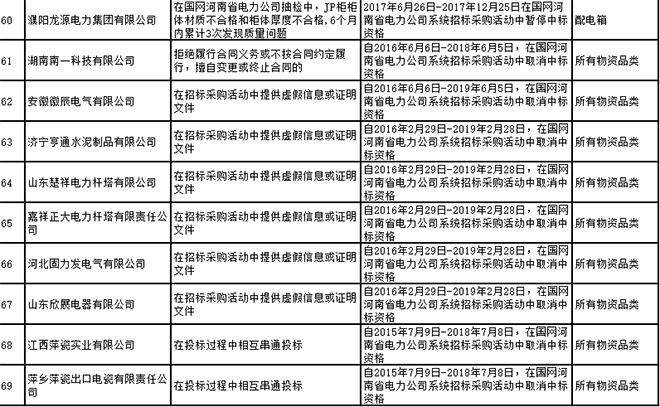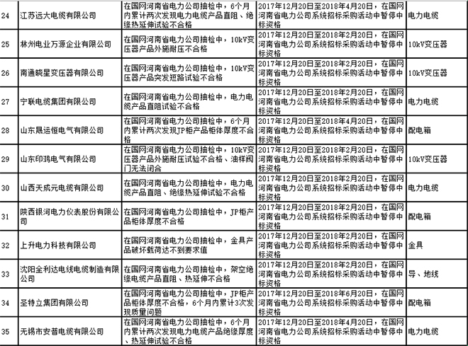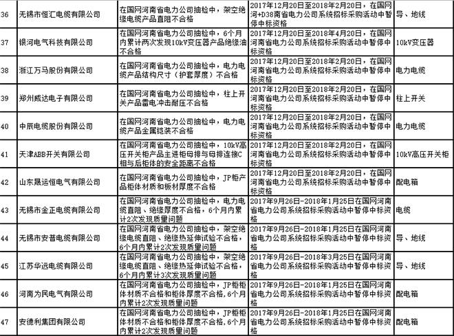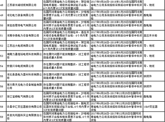 國網(wǎng)河南省電力公司2017年第四批供應(yīng)商不良行為處置通報
