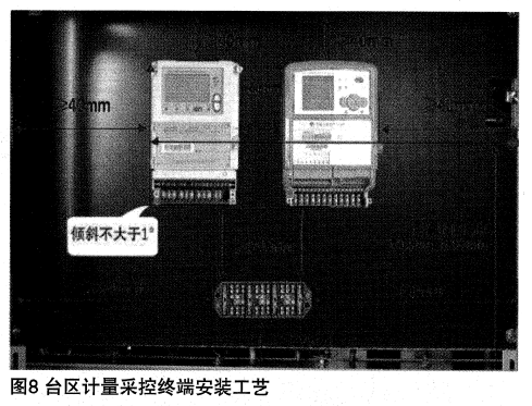 電能表、采控終端、接線(xiàn)盒的安裝固定工藝,互感器安裝工藝,元器件連接工藝,鉛封安裝工藝和CT二次電纜的安裝工藝。臺(tái)區(qū)計(jì)量采控終端安裝工藝如圖8所示。