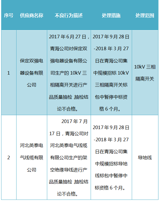 國網(wǎng)青海關(guān)于供應(yīng)商不良行為處理情況的通報(2017年9月)
