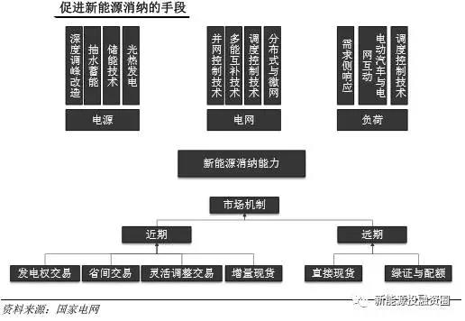 具體來看,煤電機(jī)組深度調(diào)峰改造、抽水蓄能、儲(chǔ)能、功率預(yù)測(cè)等多方面的技術(shù)的手段都在不斷涌現(xiàn)。電網(wǎng)方面,特高壓跨區(qū)輸電通道的建設(shè)和不斷發(fā)揮作用,也將促進(jìn)西北地區(qū)的新能源發(fā)電消納。負(fù)荷側(cè),電采暖、電鍋爐、港口岸電、煤改電等電能替代工程正在快速推進(jìn)。新能源汽車的不斷發(fā)展和普及,也將開始逐步將燃油能源消耗轉(zhuǎn)向電能。