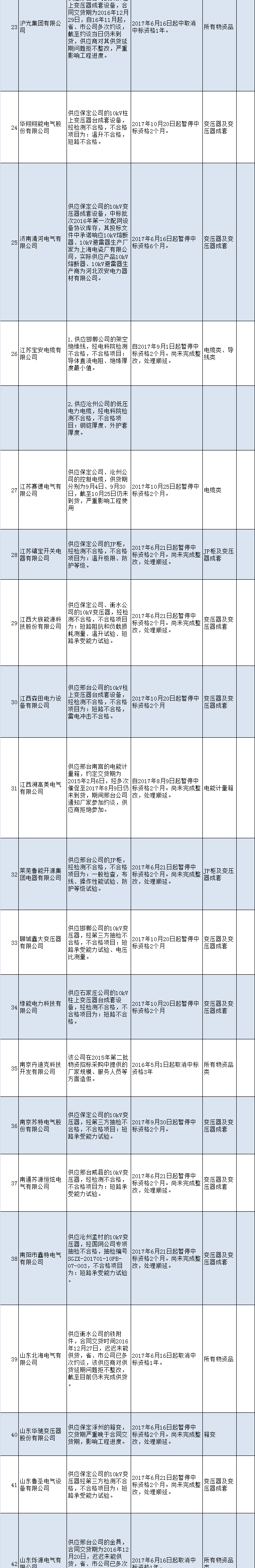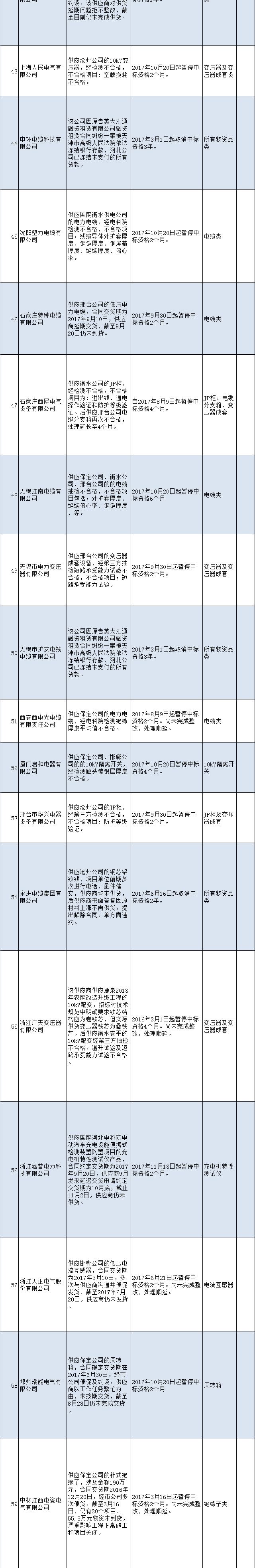 國網(wǎng)河北省電力公司供應(yīng)商不良行為處理通報(2017年11月16日)