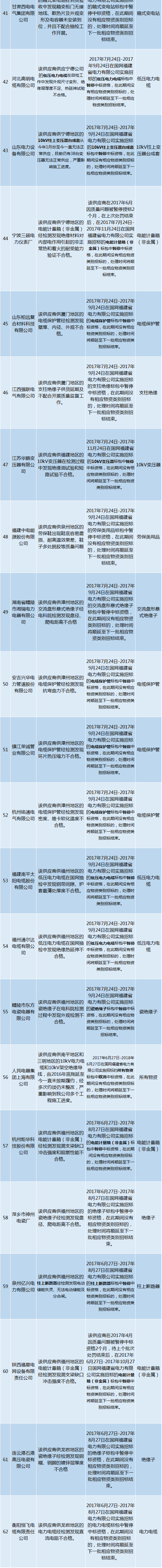 國(guó)網(wǎng)福建未解除限制供應(yīng)商名單(2017.11)