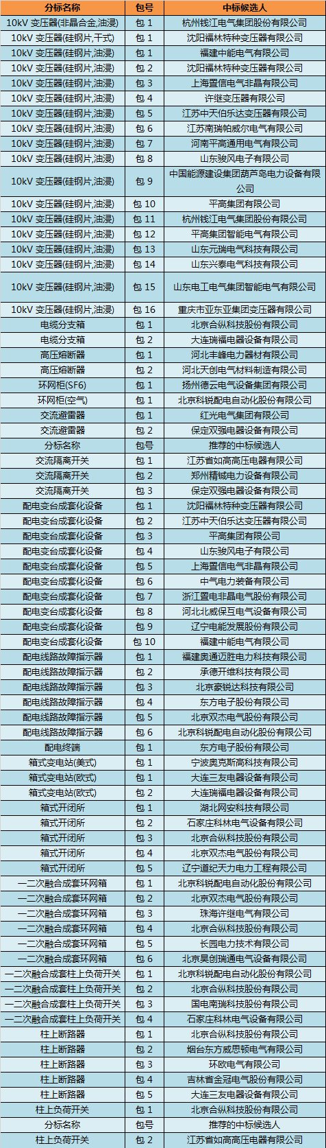 國網遼寧電力2017年第二次配網設備協(xié)議庫存貨物招標活動中標候選人結果: