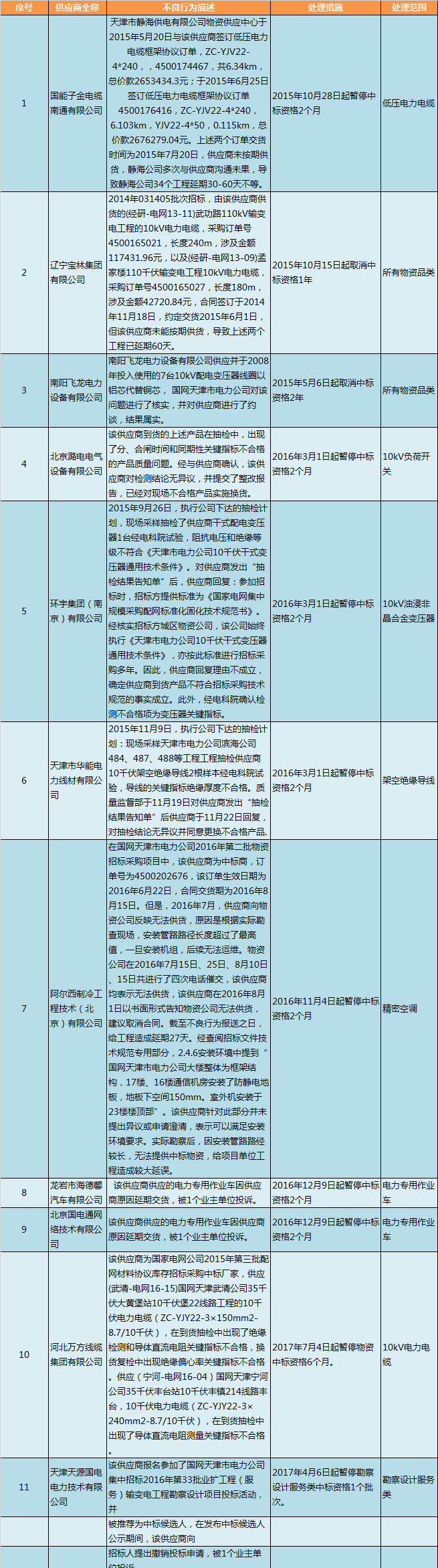 國網(wǎng)天津關于供應商不良行為處理情況的通報(2017年12月)